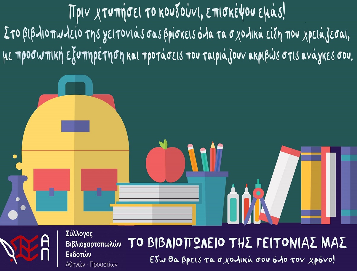 Πρόσκληση στους καταναλωτές να προτιμήσουν τα συνοικιακά βιβλιοπωλεία, απευθύνει ο Σύλλογος Βιβλιοχαρτοπωλών & Εκδοτών Αθηνών Προαστίων (ΣΒΕΑΠ).
