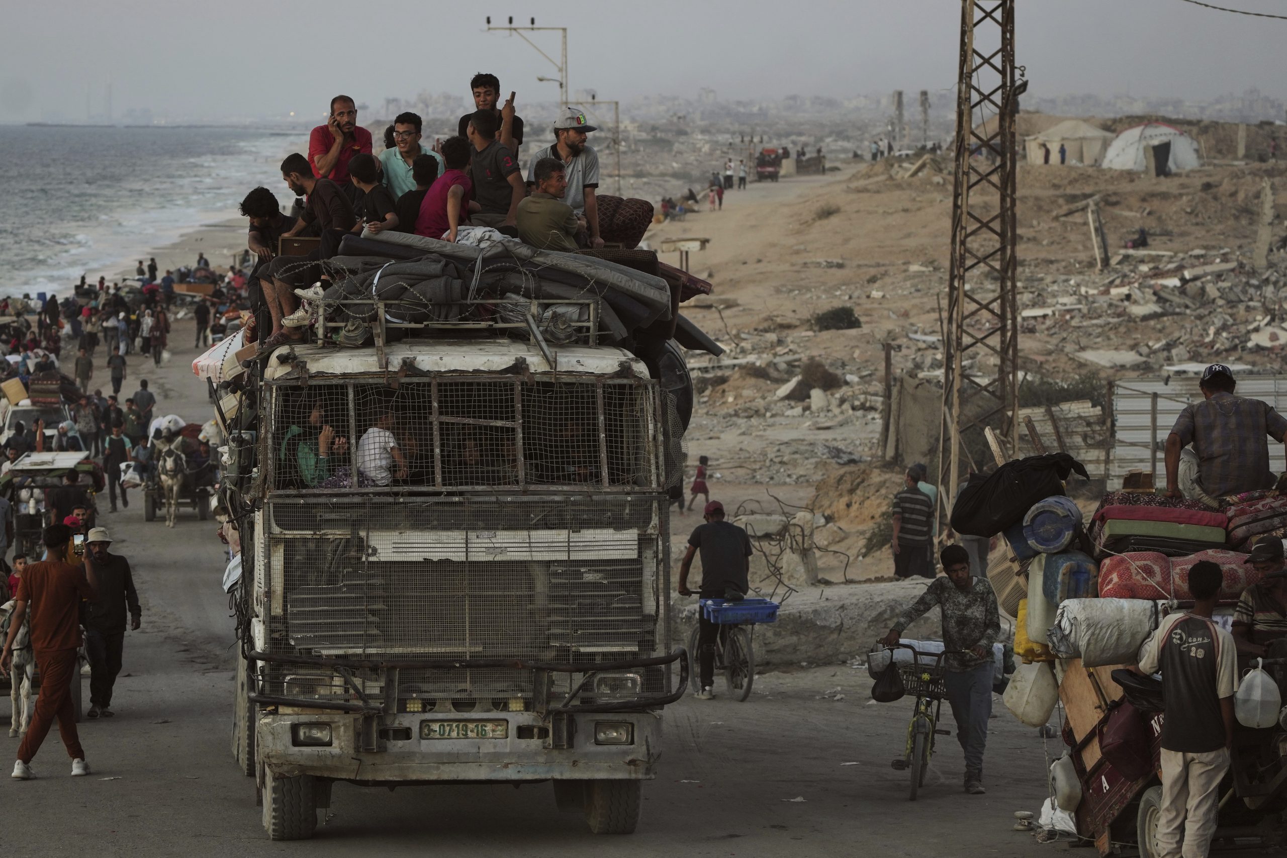 Με τα πόδια, με ποδήλατα, με οχήματα, Παλαιστίνιοι έφευγαν μαζικά από την πόλη της Γάζας,…
